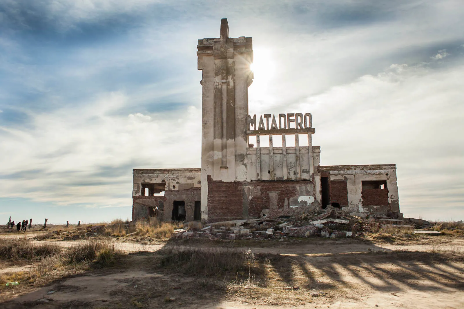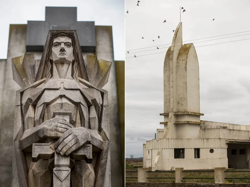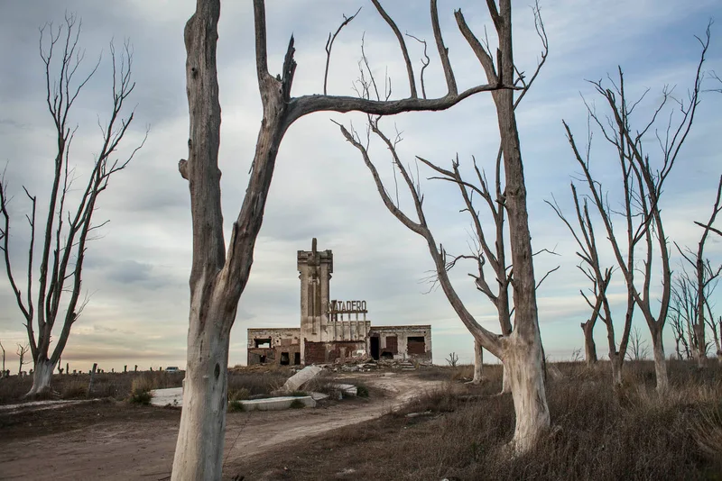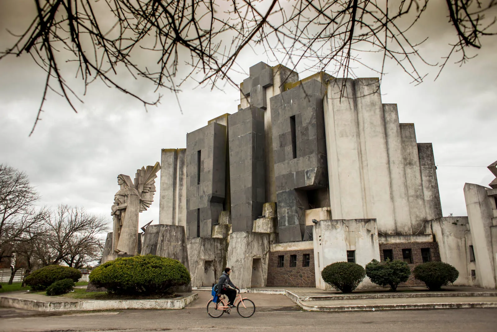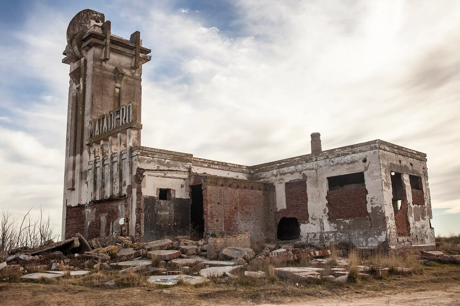 The monumental architecture of Francisco Salamone lost in the boundless Argentine Pampa.